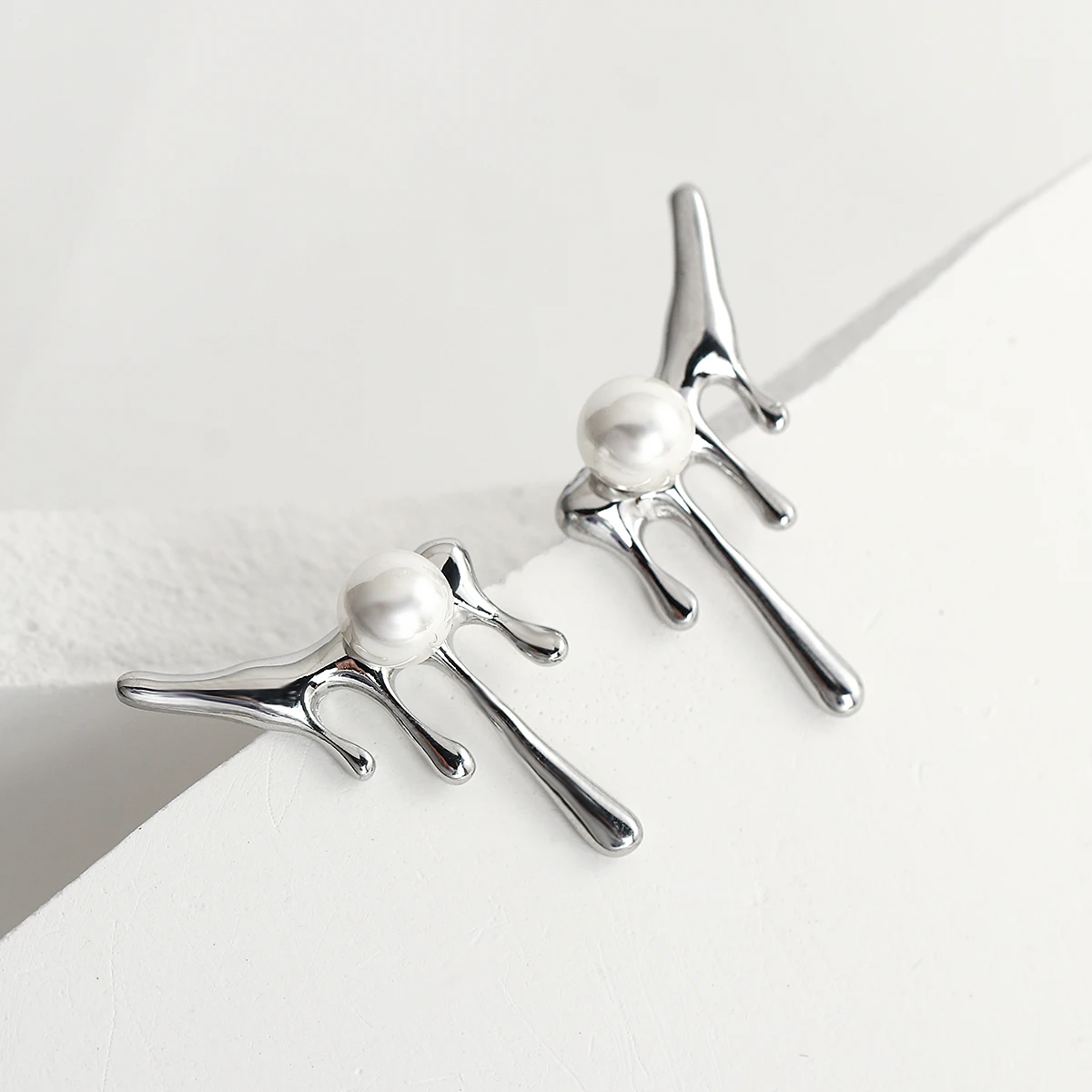Модные металлические серьги-подвески Lifefontier с жемчугом неправильной формы для женщин, цвет золото, серебро, лава, серьги-подвески в форме, корейские ювелирные изделия