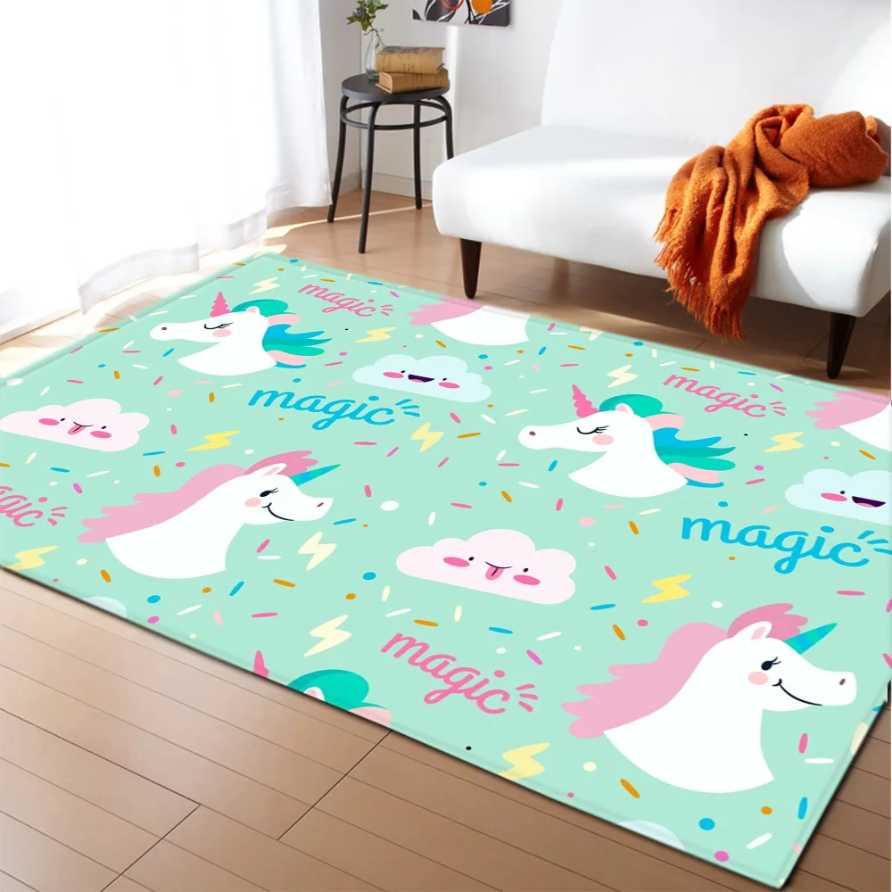 Радужный Единорог мультфильм 3D печать ковер детская спальня игрово...