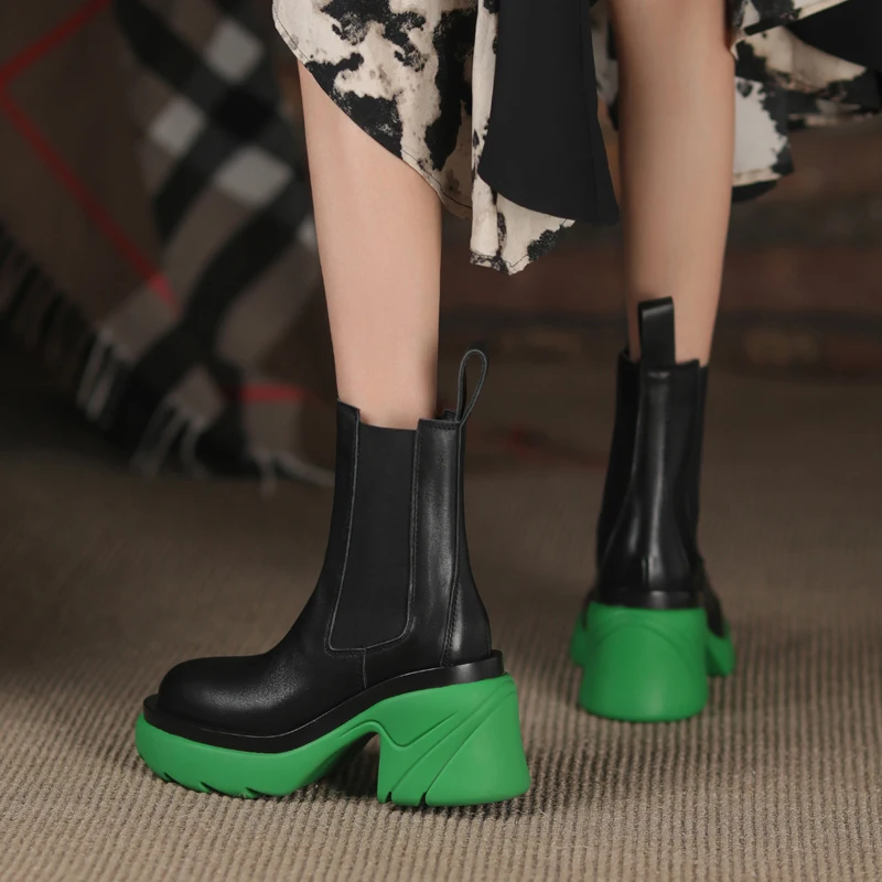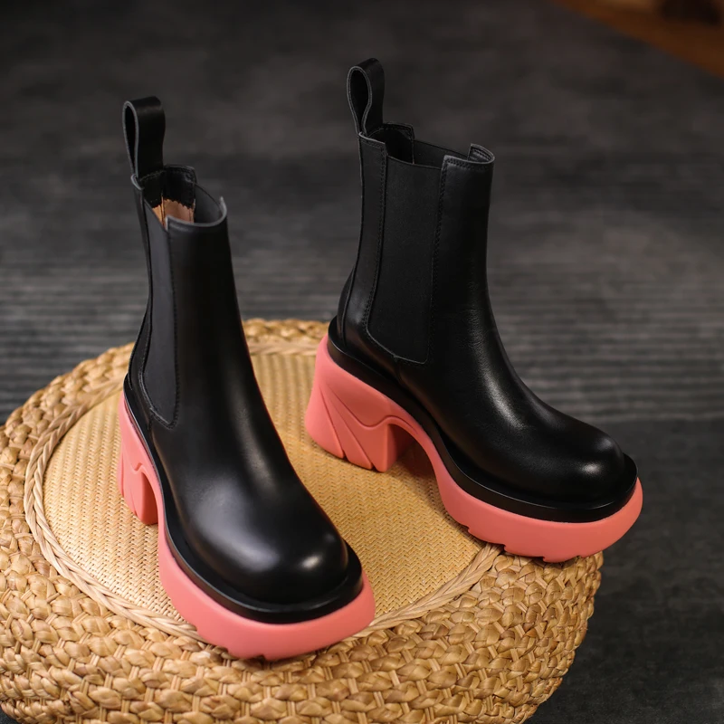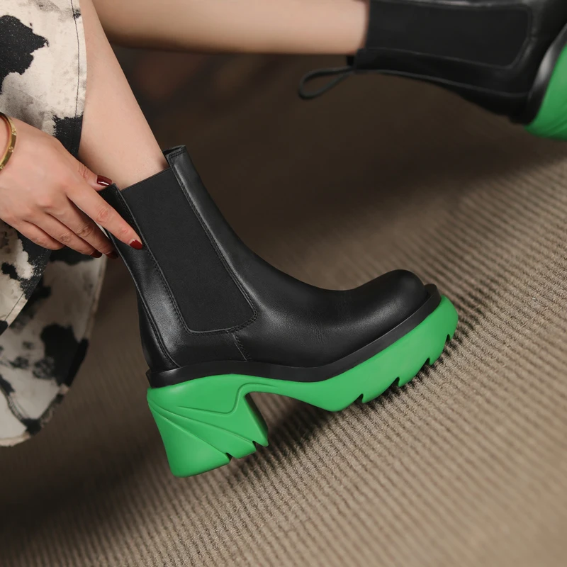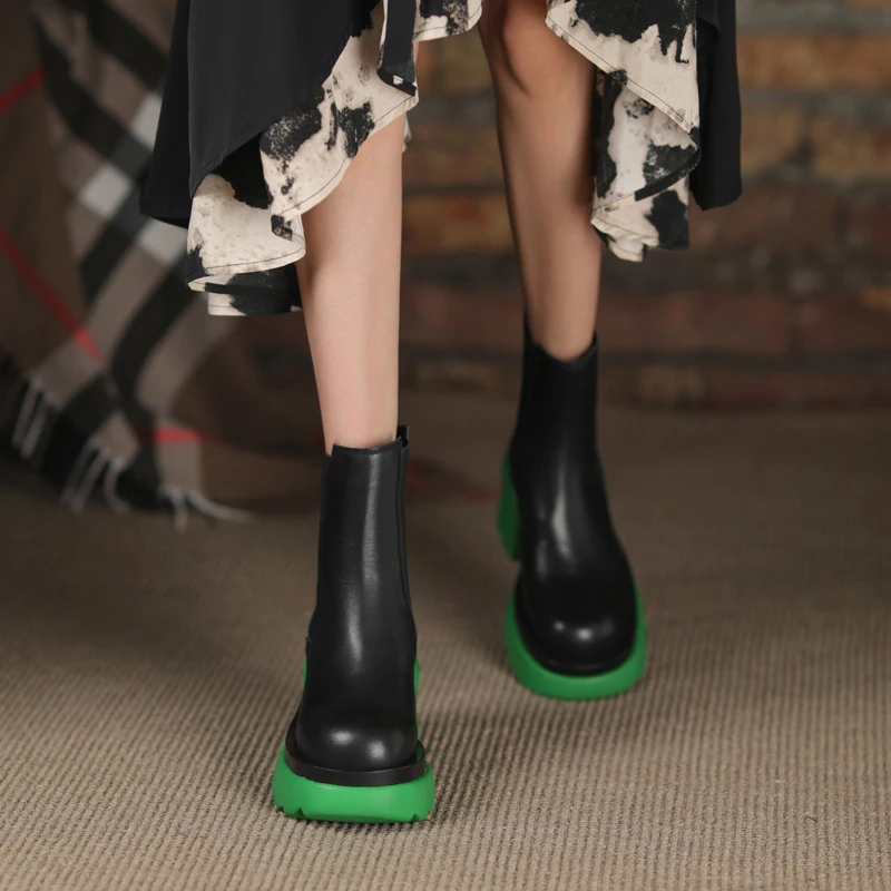 Женские кожаные ботинки до щиколотки, на толстой платформе