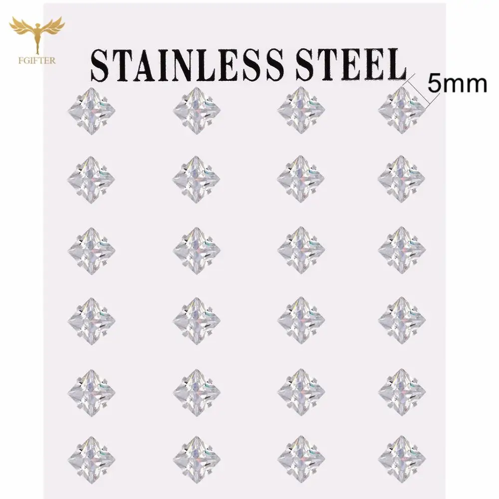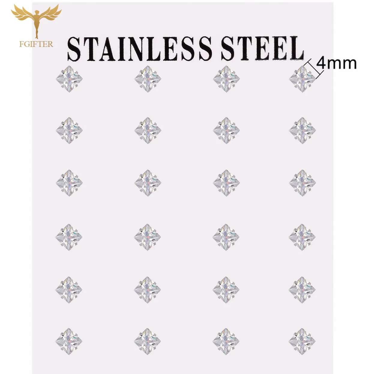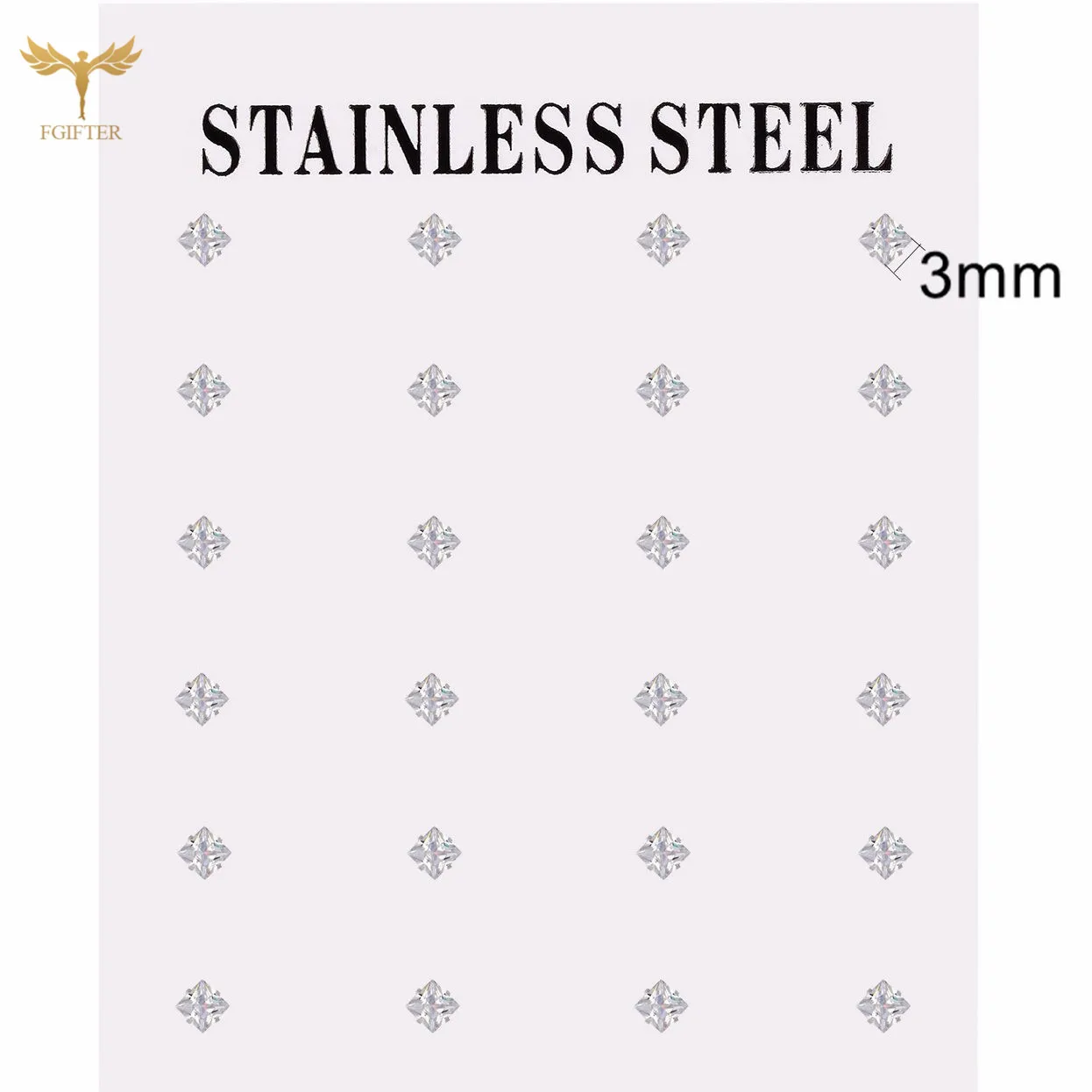 Серьги-гвоздики из нержавеющей стали с кристаллами, 3-6 мм