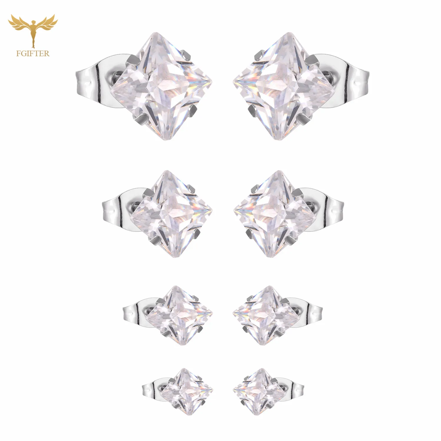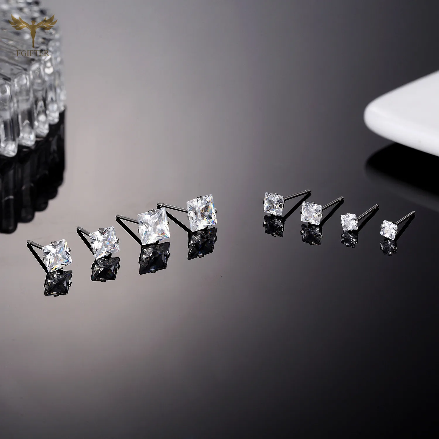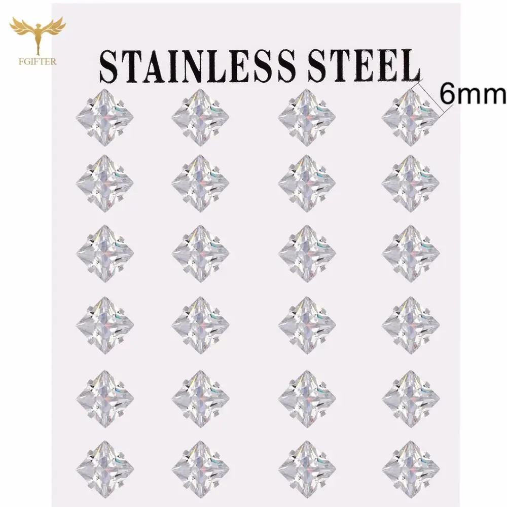 Серьги-гвоздики из нержавеющей стали с кристаллами, 3-6 мм