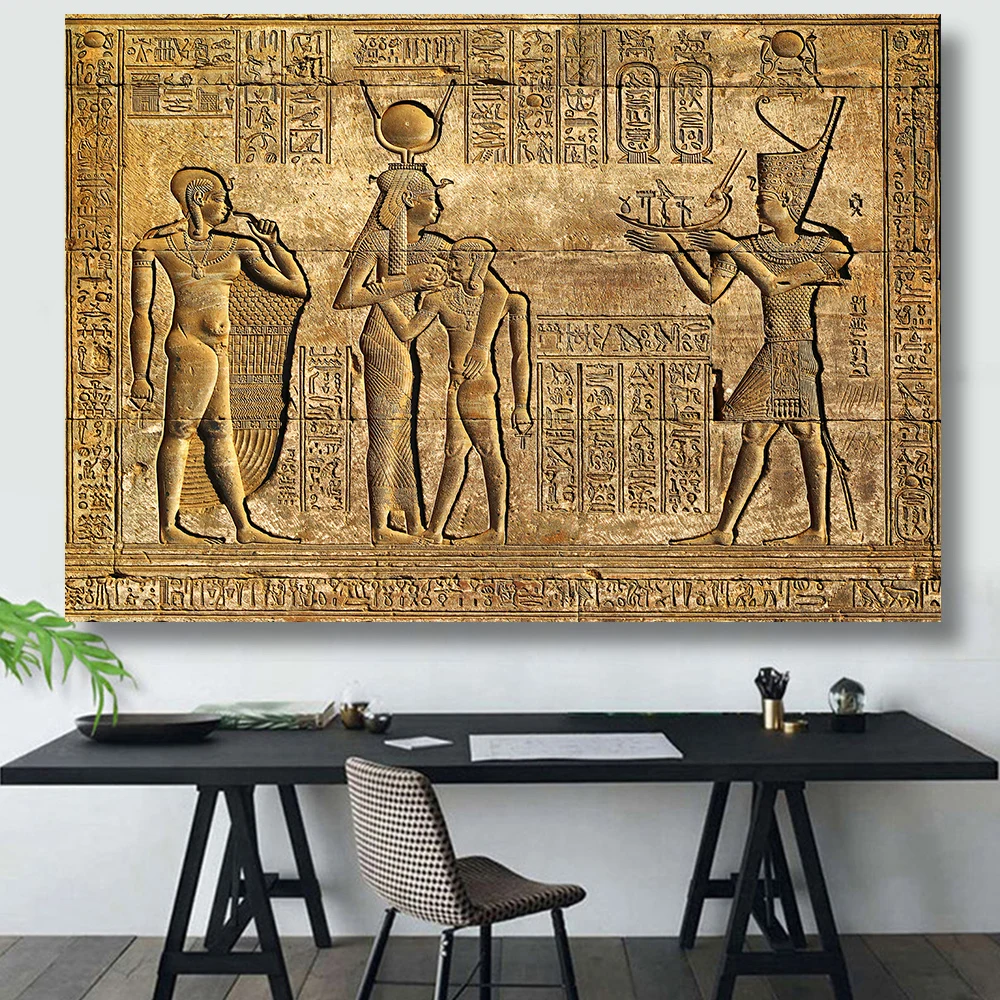 Египетские хироглифы, фреска, Картина на холсте, королева Хатшепсут, храм, резьба по камню, Постер Фараона, древний Египетский настенный принт