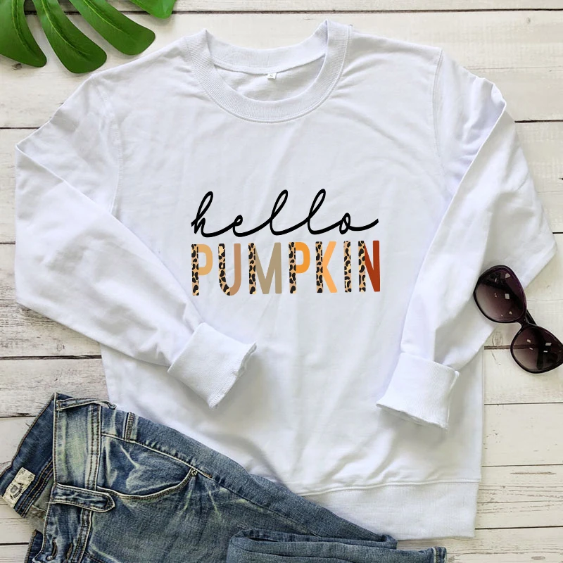Свитшот с леопардовой тыквой из 100% хлопка, милый женский пуловер ...