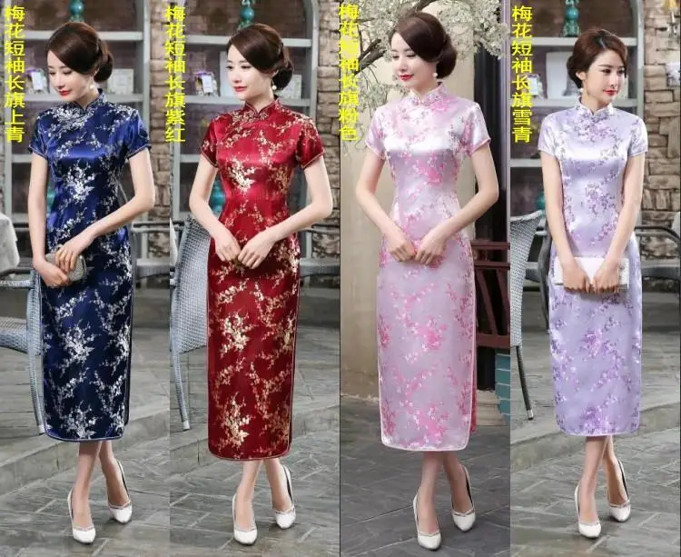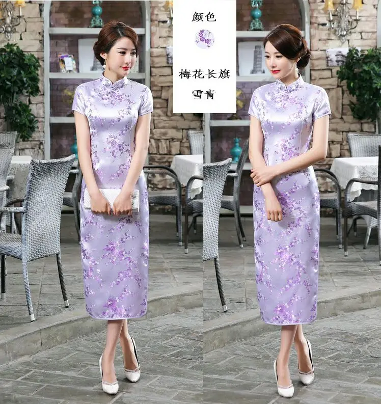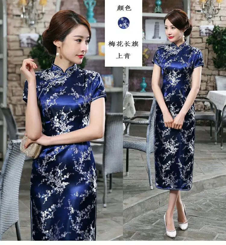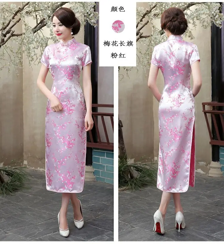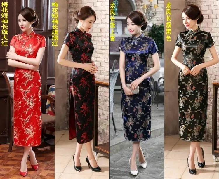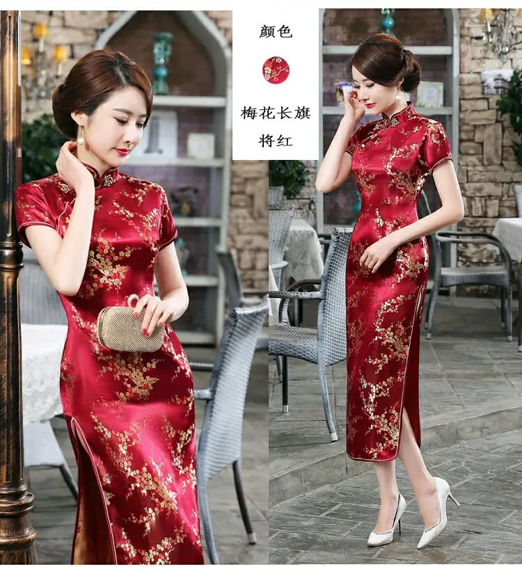 Платье женское китайское традиционное шелковое атласное, длинное пл...