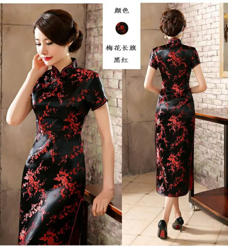 Черно-красное китайское традиционное платье, женское шелковое атлас...