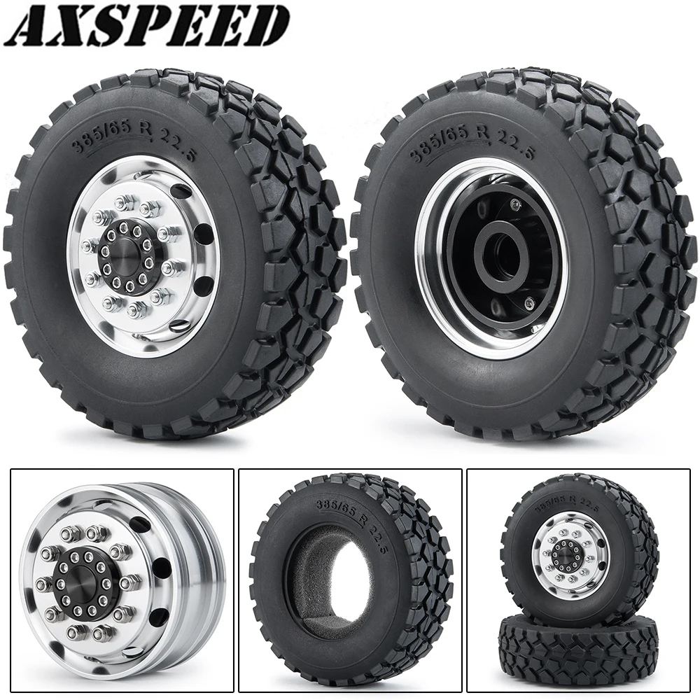 AXSPEED Tamiya Ободы ступиц переднего колеса и резиновый комплект шин для 1/14 Тамия трейлер трактор грузовик RC скалолазание колеса автомобиля запчасти