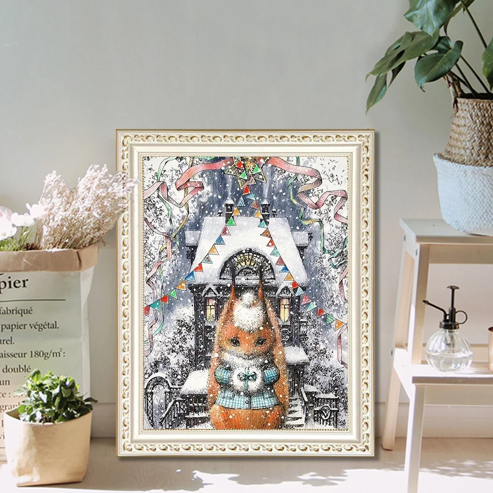 MomoArt вышивка Дом стразами DIY алмазная живопись зимний пейзаж полная дрель квадратная мозаика белка вышивка крестиком домашний декор