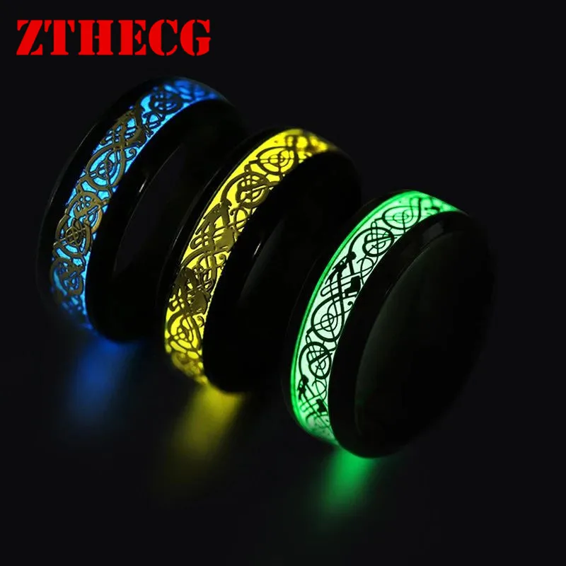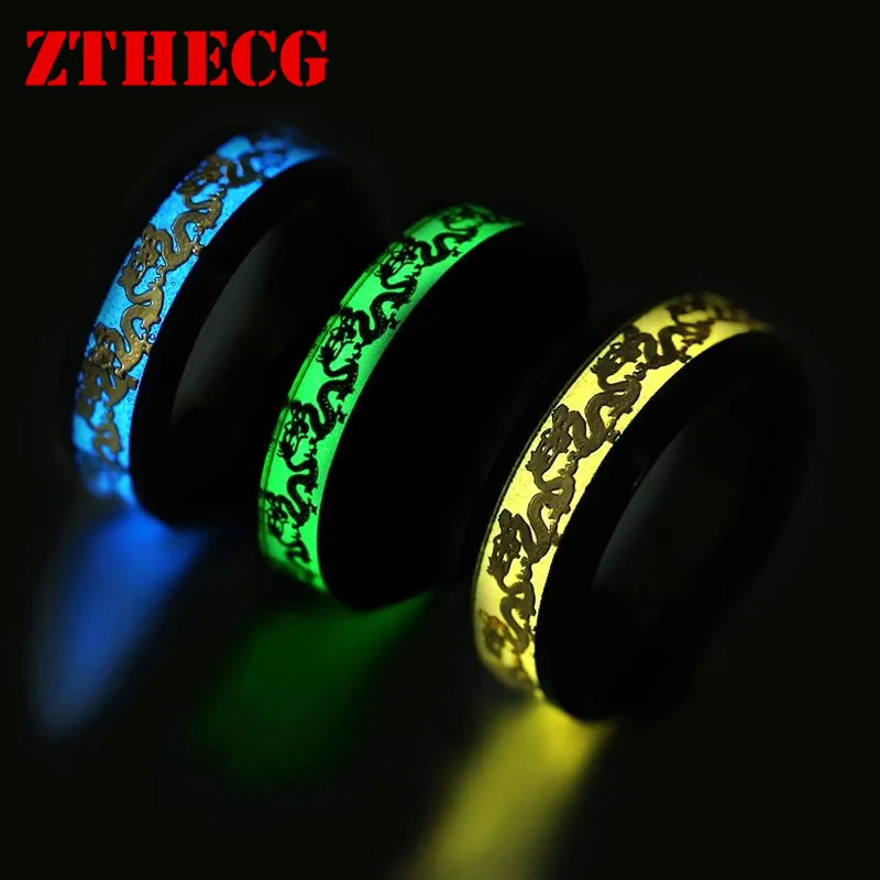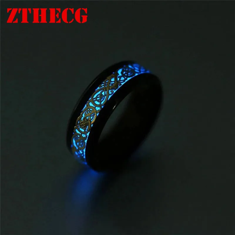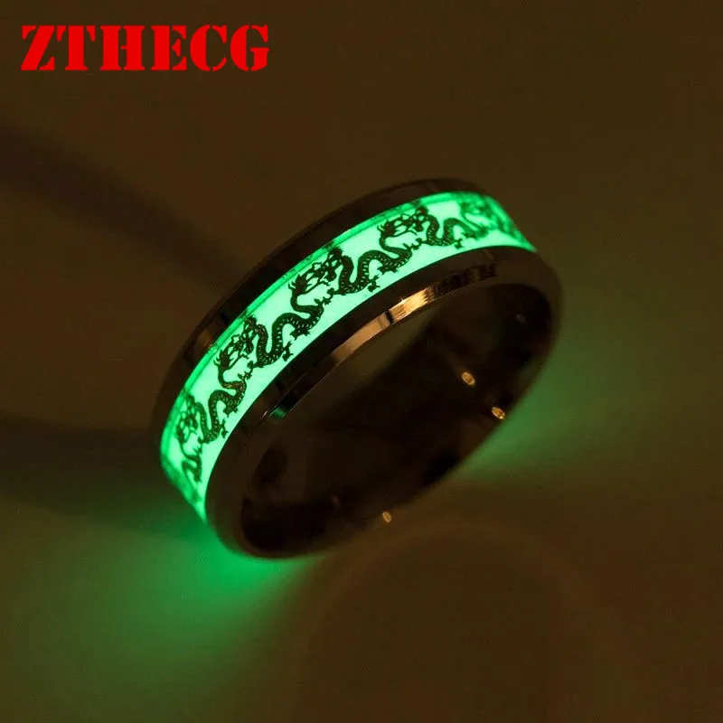 Модное светящееся кольцо из нержавеющей стали с драконом