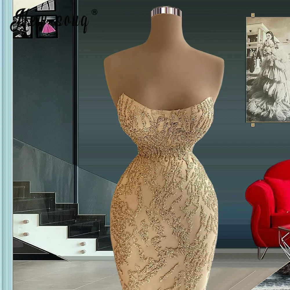 Женское платье-Русалка для выпускного вечера, винтажное платье цвета шампанского, без бретелек, в африканском стиле, 2021