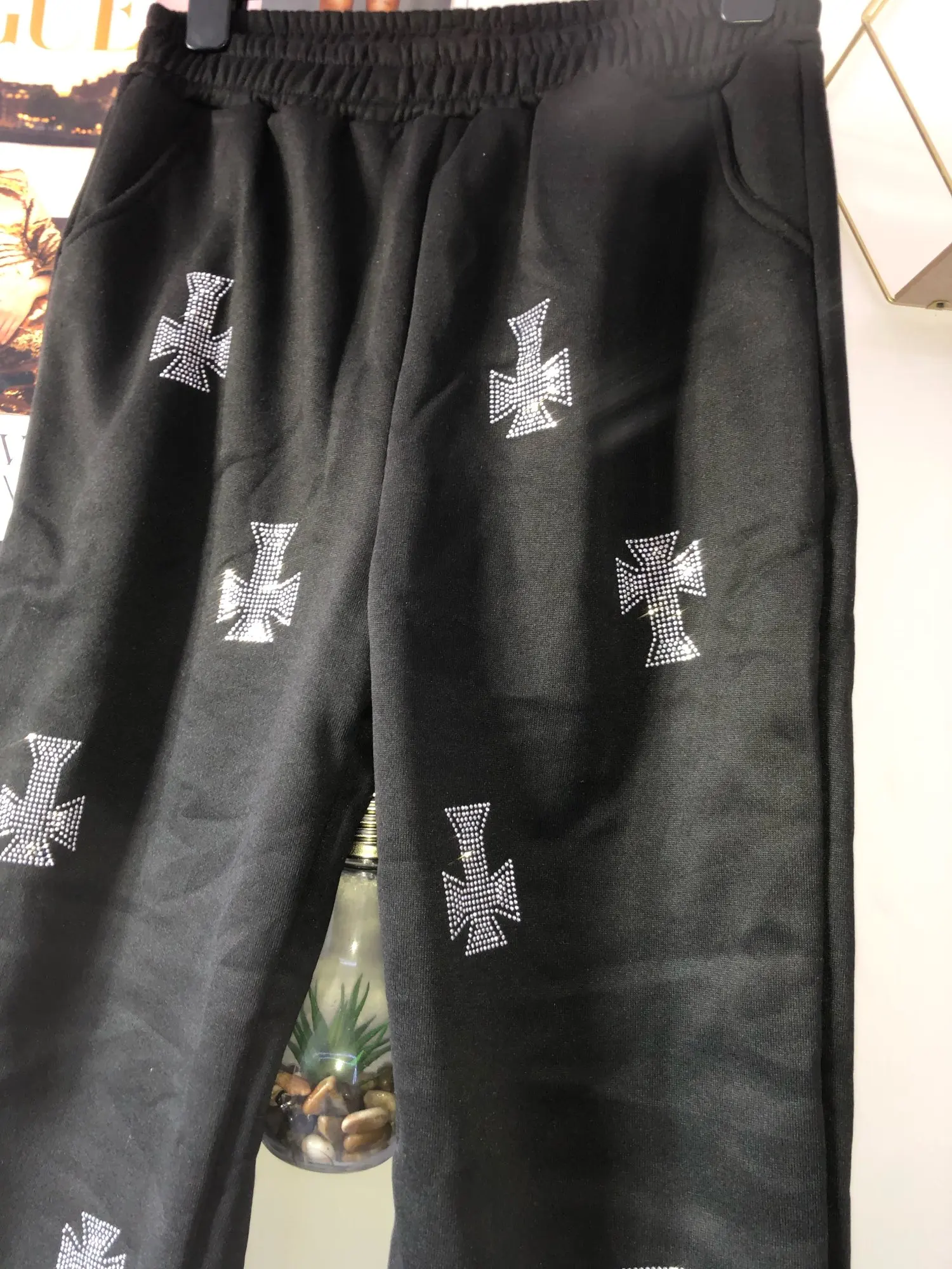 Американские ретро брючные костюмы в стиле хип-хоп, зимний спортивный костюм стразы, куртка с перекрестными полосками, черный и белый кардиган, брючный костюм, женский брючный комплект Y2k