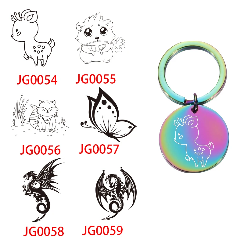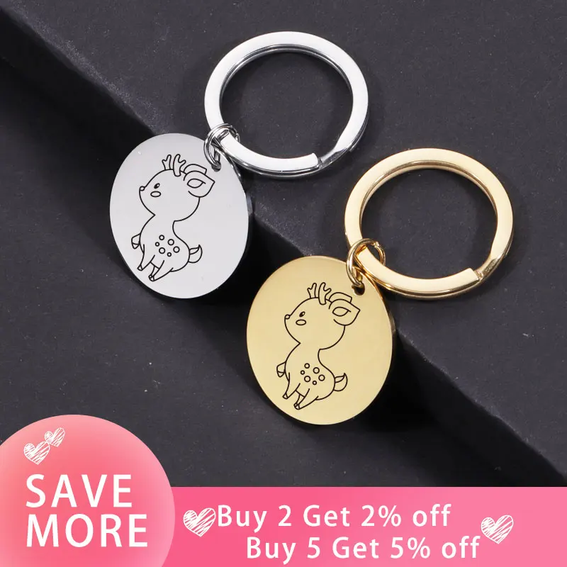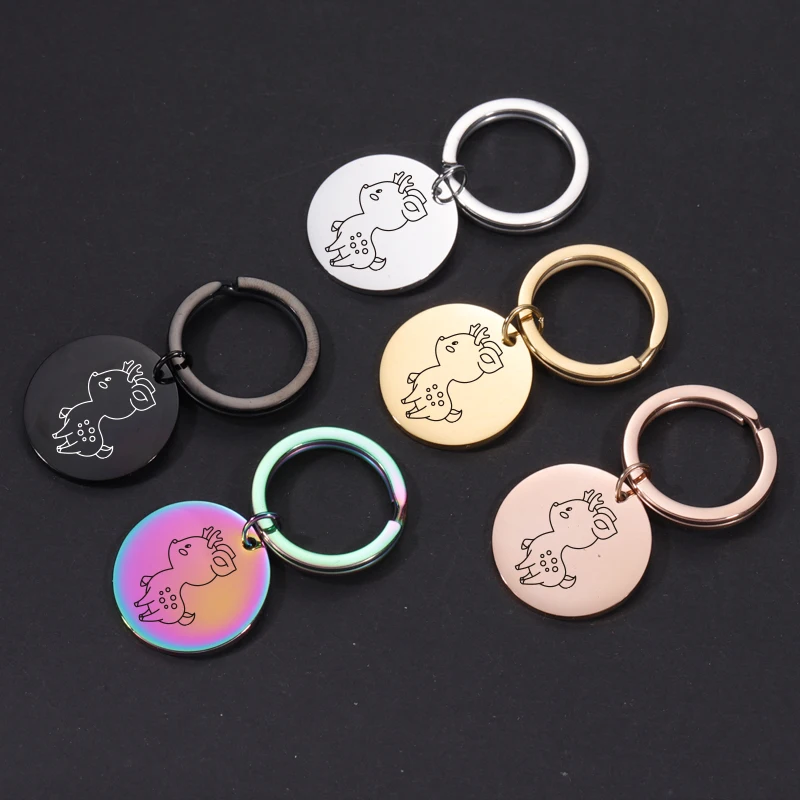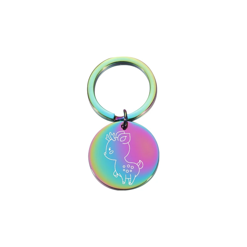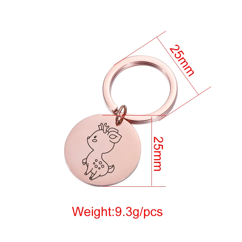 Брелок для ключей Fnixtar, 20 шт.лот, круглый брелок из нержавеющей стали с изображением героев мультфильмов, белки, дракона, оленя, бабочки, для мужчин и женщин