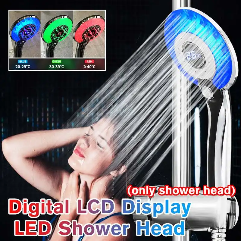 3 цвета светодиодный душ Головка Цифровой ЖК-дисплей контроль температуры душа душевая головкаПосылка включает в себя:1x3 цветной светодиодный душ