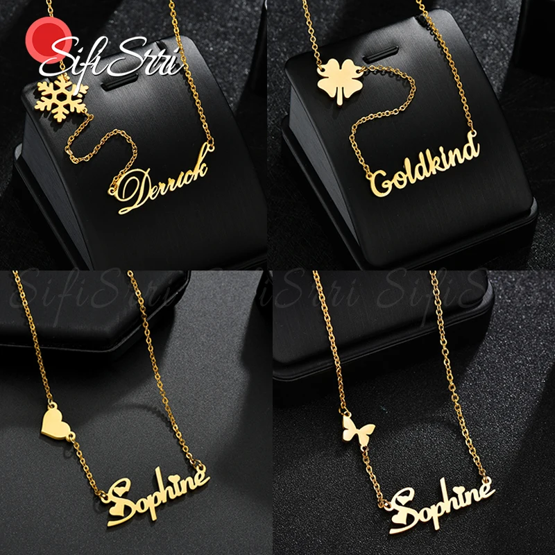 Сифирри 2021Индивидуальные именные ожерелья сердце бабочка кулон из нержавеющей стали для женщин украшения на свадьбу, годовщину подарокМатериал: нержавеющая сталь, металл