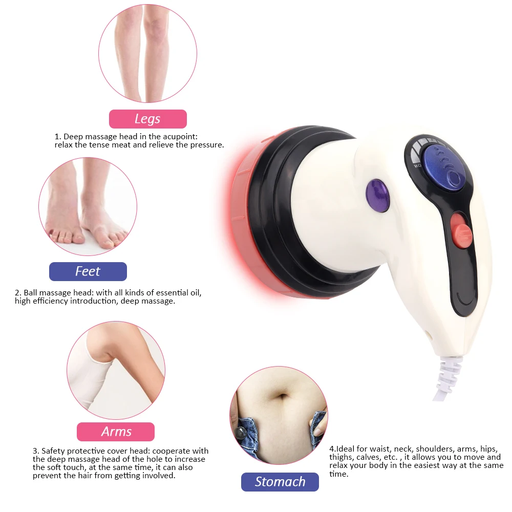 3. Сочетает в себе вибрирующие головки и инфракрасную тепловую терапию, не только может ускорить кровообращение, но также может нагревать и сливать жир быстрым движением, а также гладкой ухабистой "оранжевой кожицей".