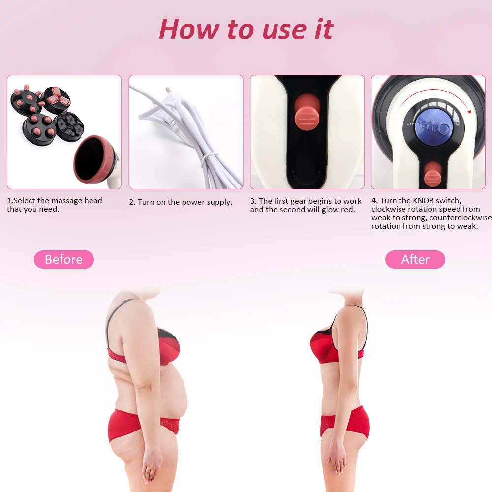 5. Машина предназначена для четырех различных массажных головок для полного похудения тела, так что она может удовлетворить ваши различные потребности. Идеально подходит как для дома, так и для профессионального использования, особенно для тех, кто сидит в офисе или дома весь день.