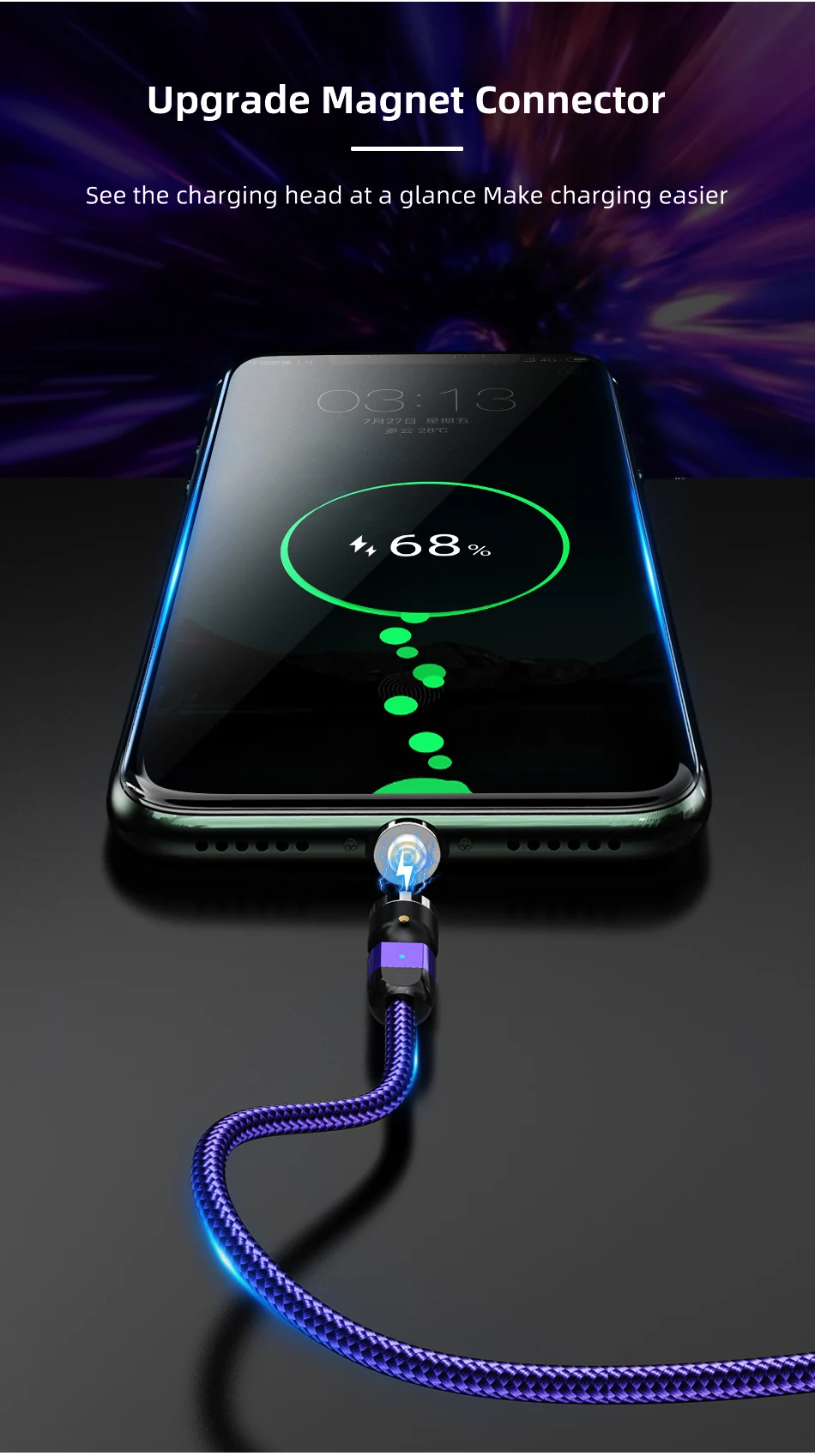 Магнитный кабель ZUIDID, Micro USB, Type-C, 3 а, с поворотом на 540...