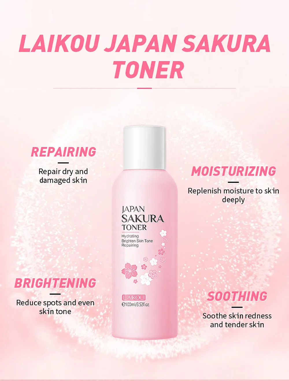 Тоник для лица LAIKOU, с цветами вишни, глубокое увлажнение, контро...