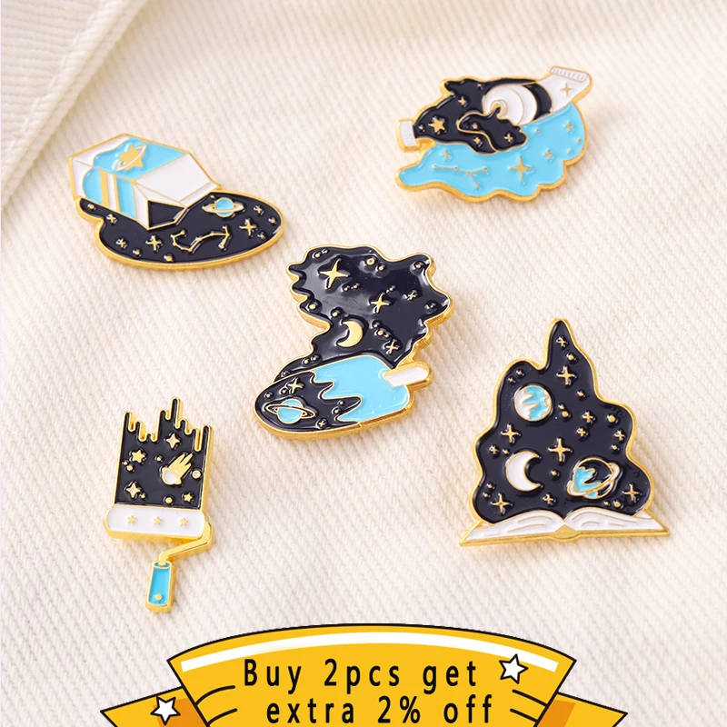 Эмалированные булавки Dark Interstellar Galaxy Звезды Луна на заказ...