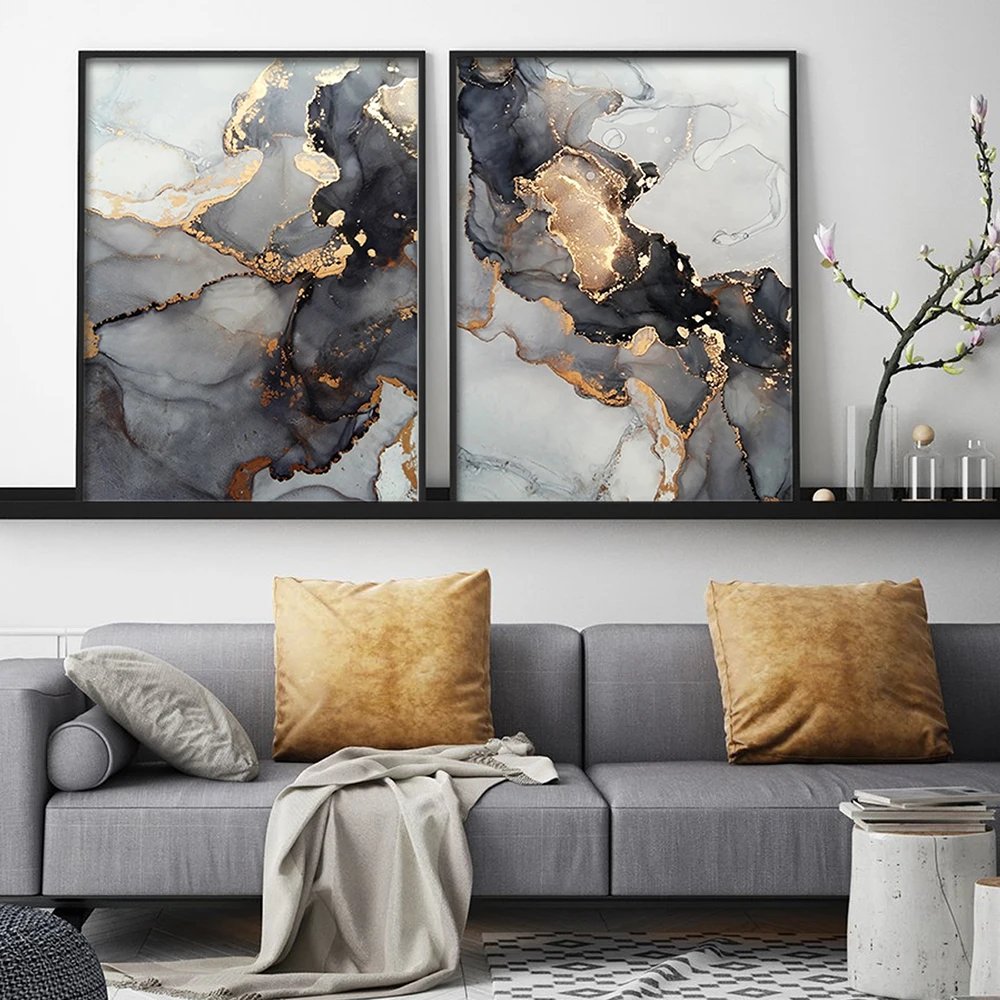 Большой черный и золотой мраморный Настенный декор, серый абстрактный холст, живопись, декор для комнаты, картина, настенное искусство, скандинавский стиль