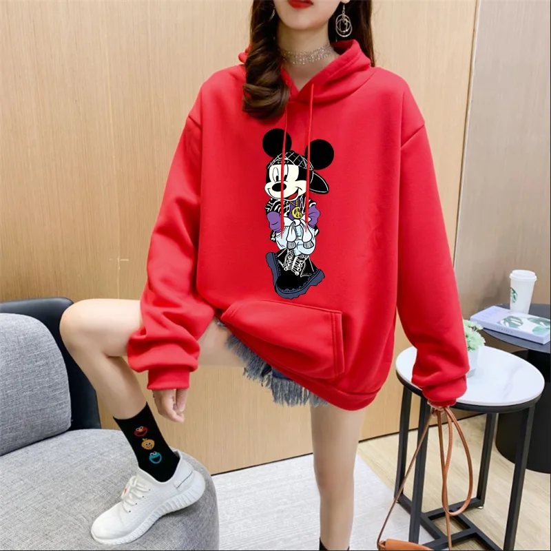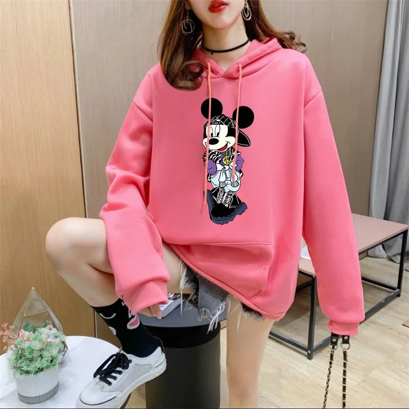 Женская толстовка с капюшоном, с принтом Микки Мауса и Диснея, в стиле Харадзюку, Осень-зима, свободная Японская уличная одежда с капюшоном Y2K