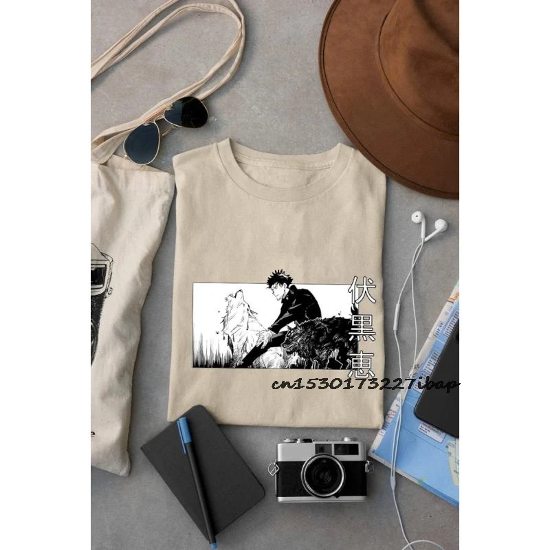 Божественная собака юдзюцу кайзен аниме футболка годжо и Юдзи Мегуми фусигуро манга Забавные футболки Мегуми фусигуро японская Футболка мужская