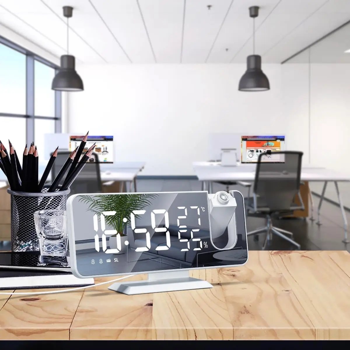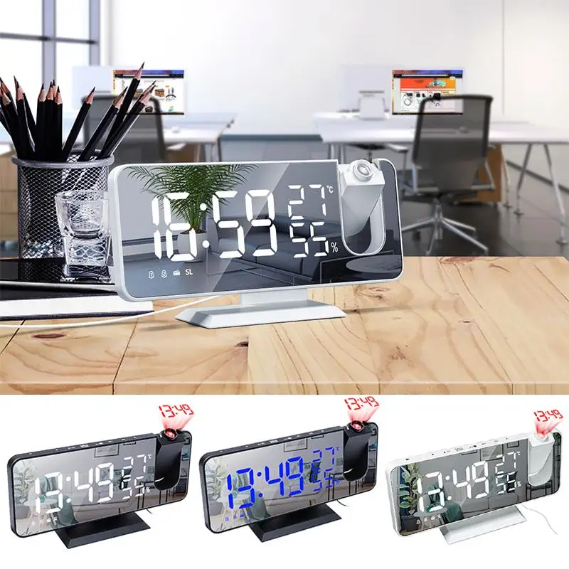 Часы с проекционным зеркальным цифровым смарт-будильником FM-радио ...
