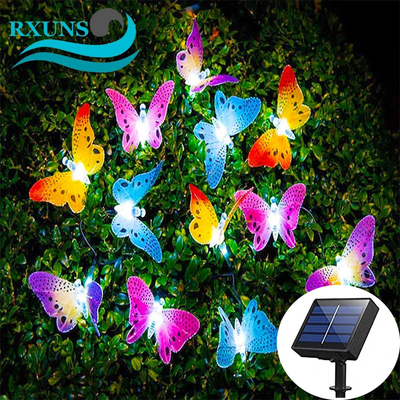 Садовые солнечные огни бабочки струнные огни водонепроницаемые волоконно-оптические бабочки 12 Светодиодный многоцветный светильник для сада лужайки патио