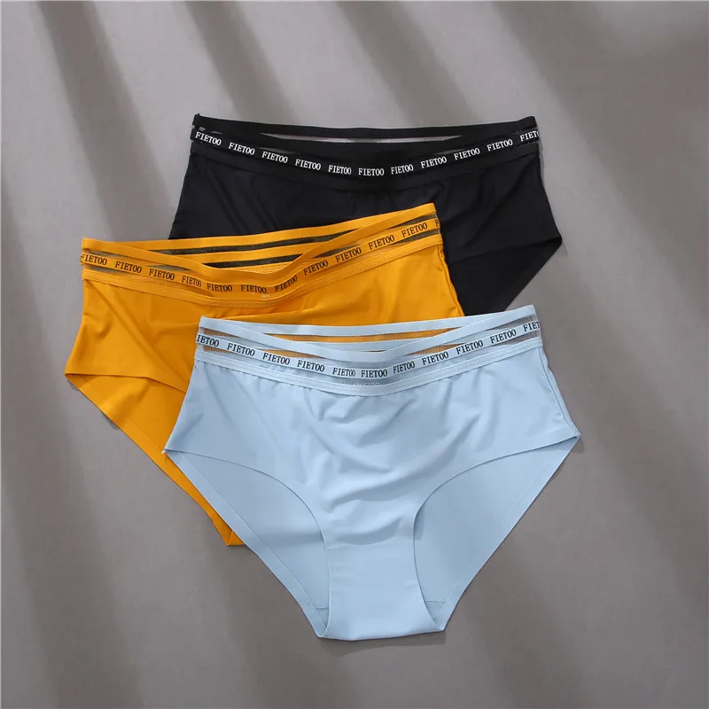 Бесшовное женское нижнее белье FINETOO, модные трусики в стиле пэчворк с надписью, женские трусы со средней посадкой, полые трусики, мягкое нижнее белье