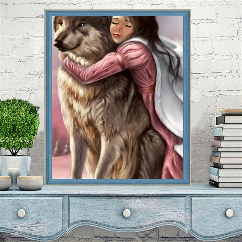 Алмазная картина 5D "сделай сам", женщина с волком, медведем, Лев, вышивка крестиком, наборы для вышивки, животные, мозаичные картины, домашний декор, подарок