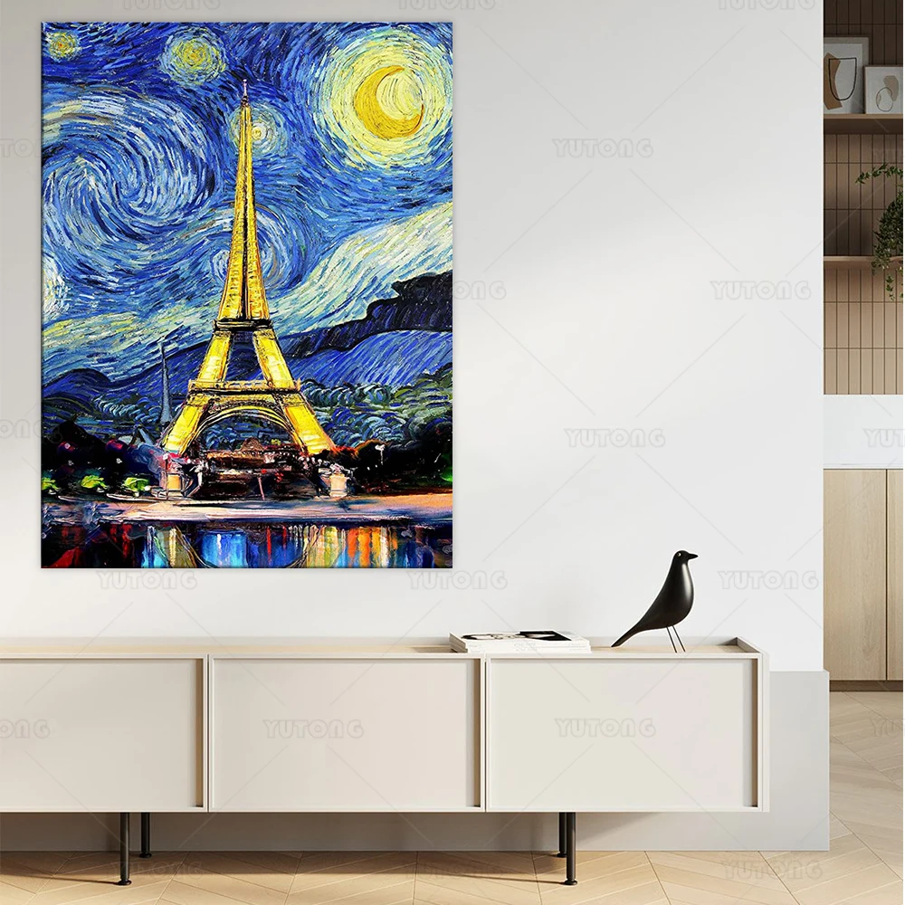 Ван Гог Холст Настенная картина для звездной ночи картины маслом Париж Эйфелева башня, украшение для домашнего декора гостиная спальня рамка
