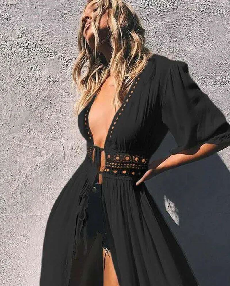 Женское длинное пляжное платье-макси с V-образным вырезом