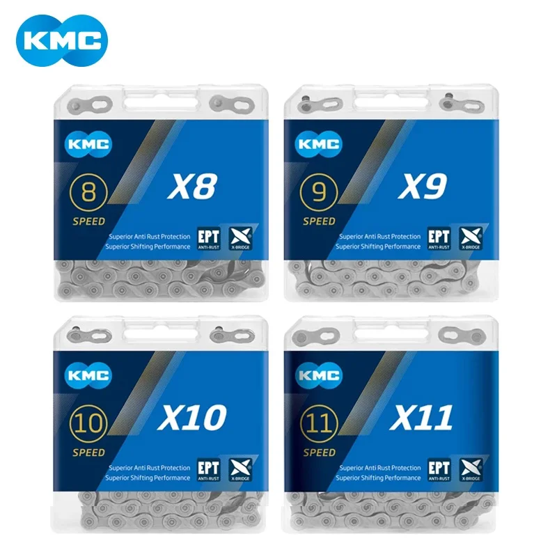 Цепь KMC X8, X9, X10, X11, EPT, 116 звеньев, 9 В, 10 в, 11 в, 8 скоростей, серебристая, предотвращает ржавчину, ссветильник Кая, двойная цепь для горного и дорожного велосипеда