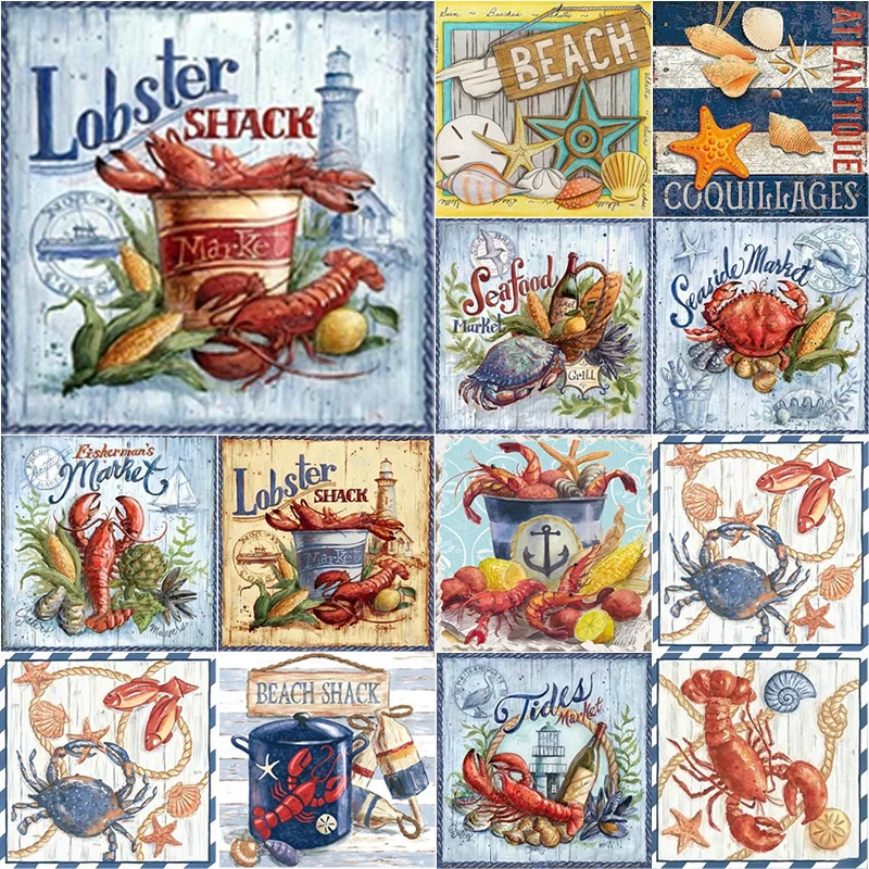 Алмазная живопись 5D сделай сам, картина с искусством морепродуктов, вышивка крестиком, квадратная, круглая, ручное искусство, подарок для домашнего декора