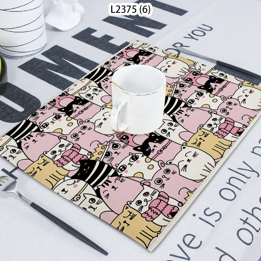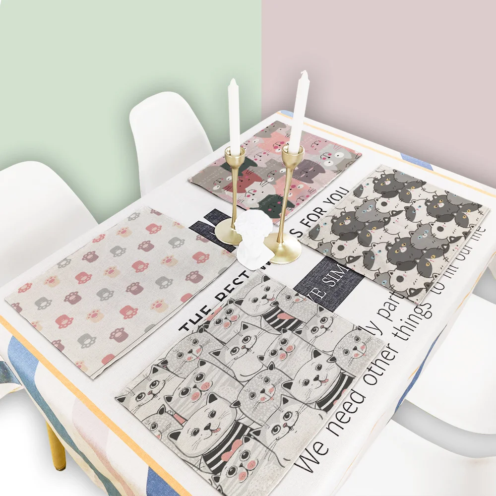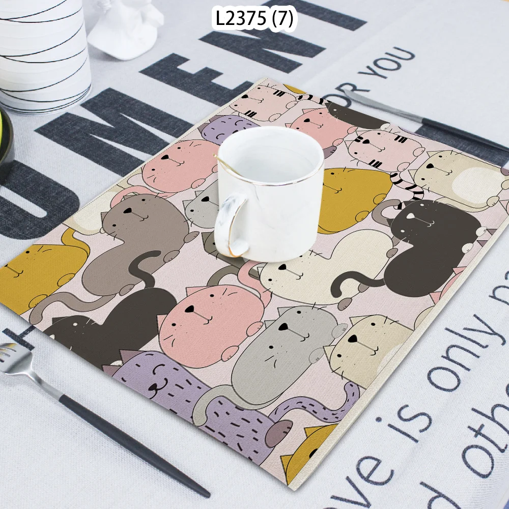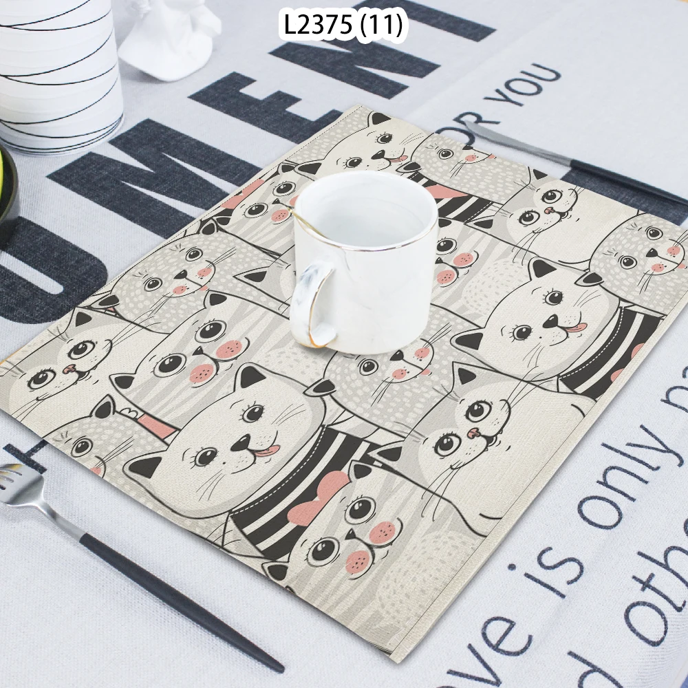1 шт. махровая ткань с рисунком мультяшного кота и пальмы, домашний декоративный коврик для стола, чайная подставка, 42*32 сервировочные салфетки