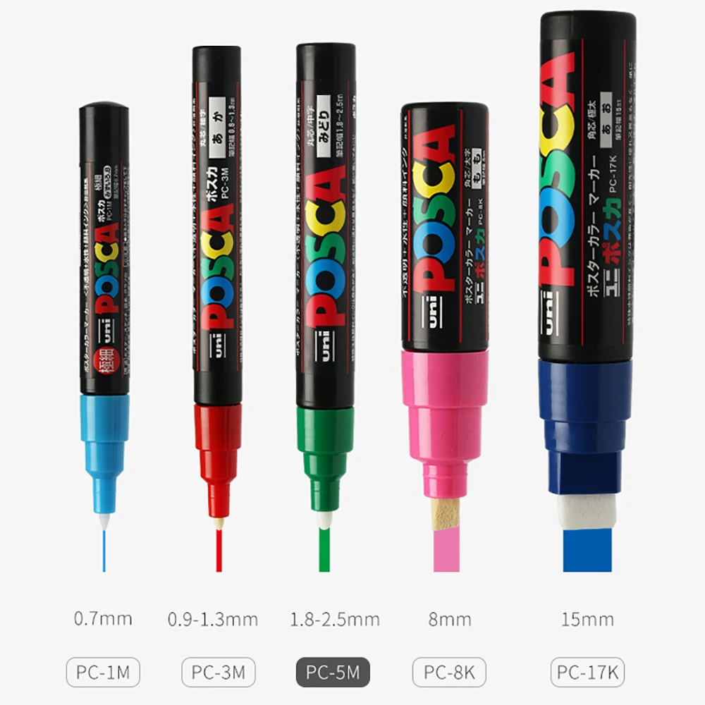 Маркеры Uni Posca, PC-1M, 14 цветов, PC-3M, 17 видов цветов, PC-5M, 17 видов цветов