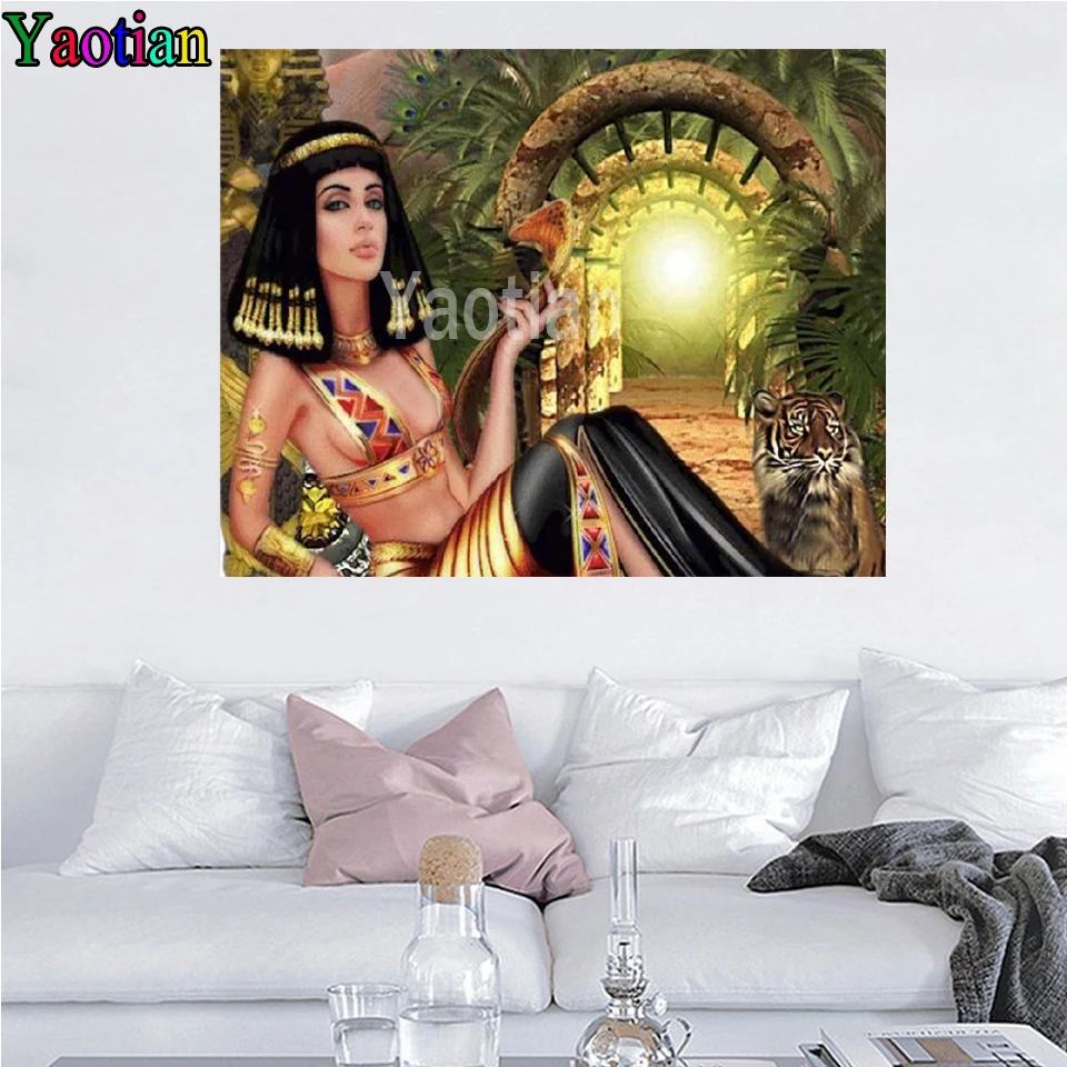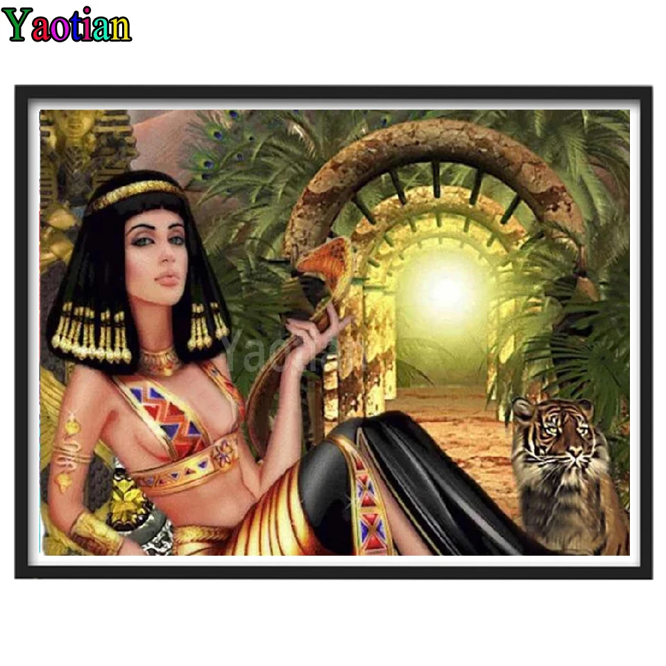 Diy Алмазная вышивка полностью квадратная круглая дрель 5d египетская красота и тигр Алмазная Картина Вышивка крестом Стразы мозаика