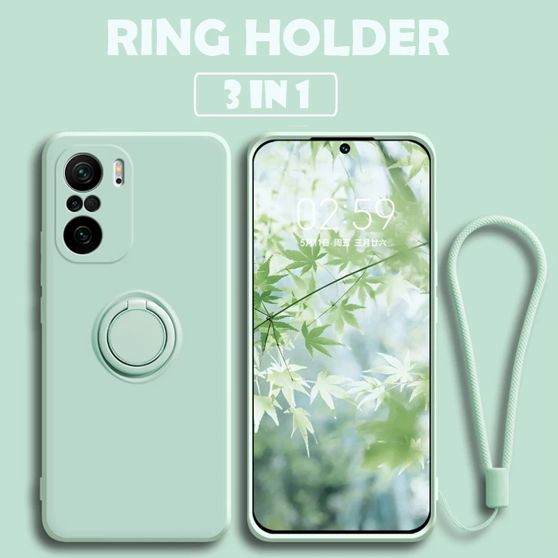 Чехол для Xiaomi Poco F3, Жидкая силиконовая резина, кольцо-держате...