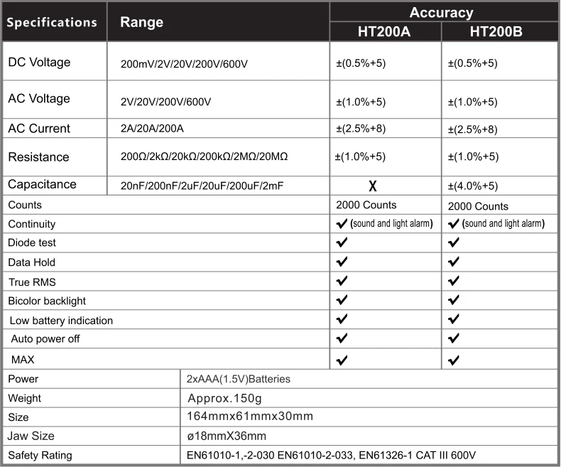 Токоизмерительные клещи HT206D, амперометрические клещи, амперметр,...