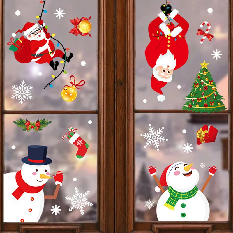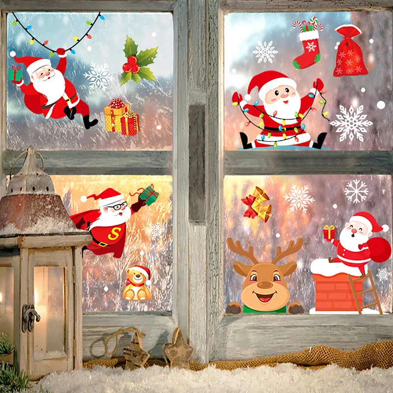 Веселые рождественские наклейки, рождественские наклейки для домашнего окна, декоративные наклейки на стену вечерние праздничный Декор