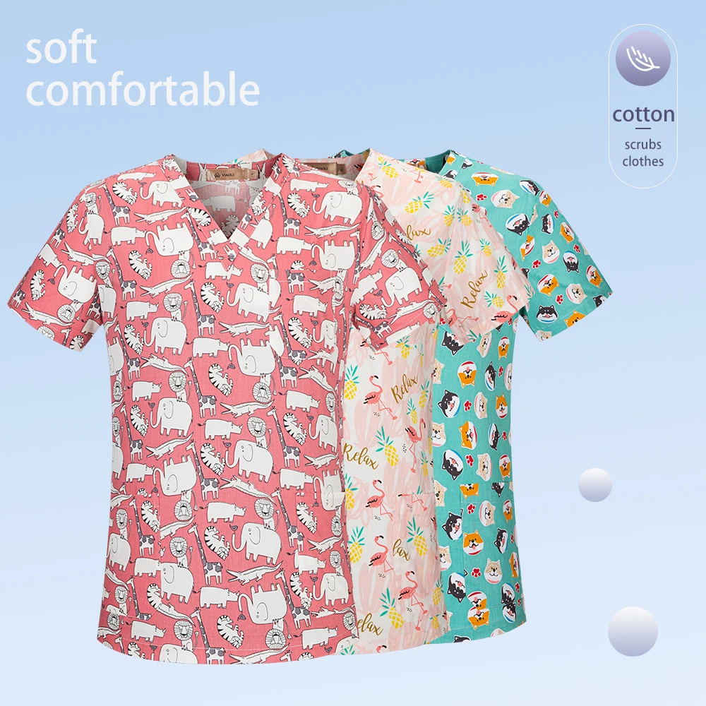 Одежда для хирургии с принтом животных, хлопковая медицинская одежд...