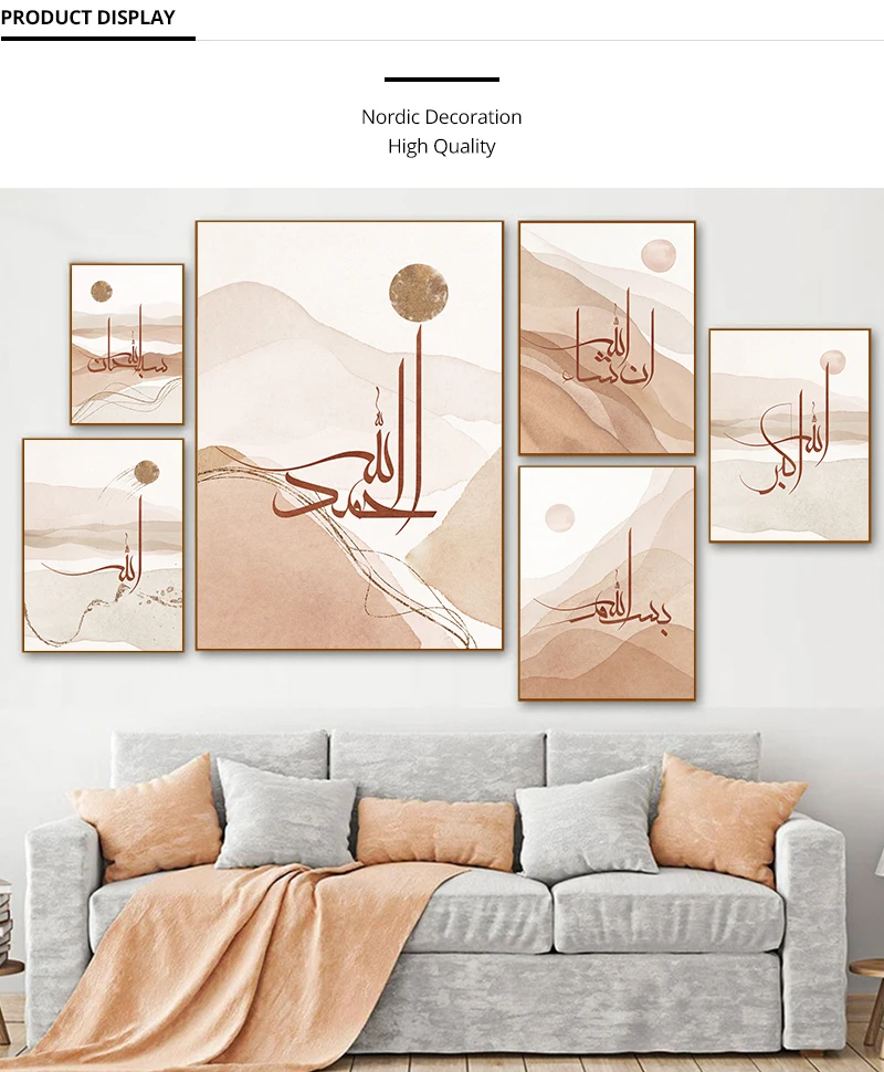 Мусульманская каллиграфия Аллах алхамдуллилла Луна абстрактный скандинавский плакат Настенная картина на холсте украшение для дома картина
