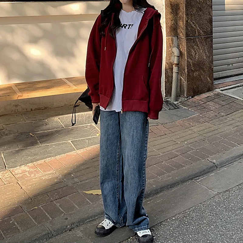Женская толстовка большого размера в стиле хип-хоп, худи на молнии ...