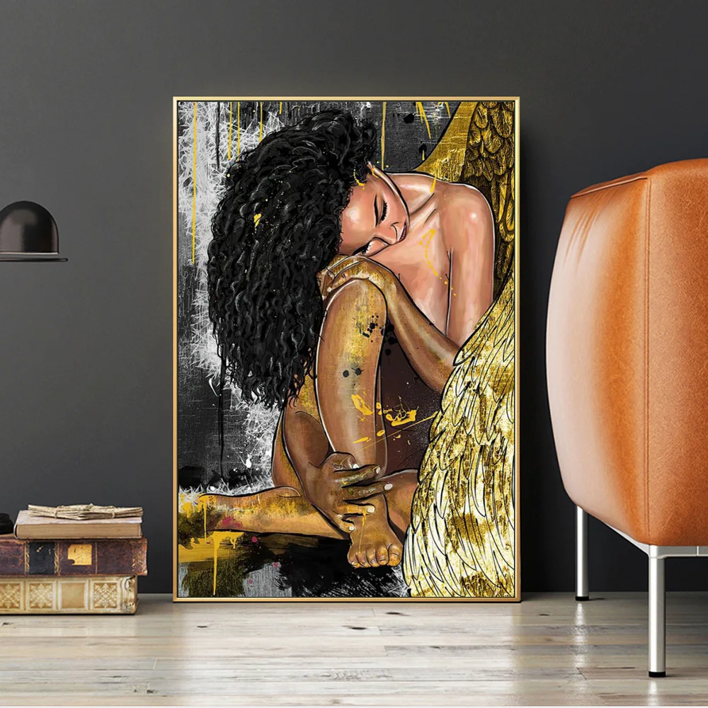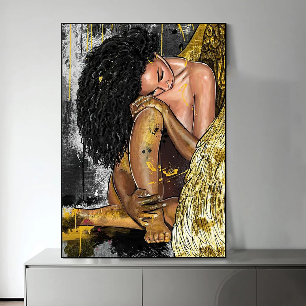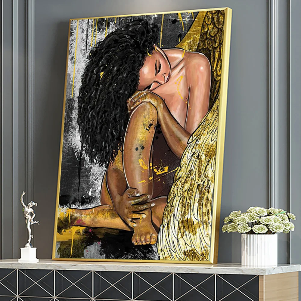 Современный холщовый постер с изображением отдыха золотого Ангела на стену сексуальное граффити женщина плакат и принты декоративная живопись картины для гостиной