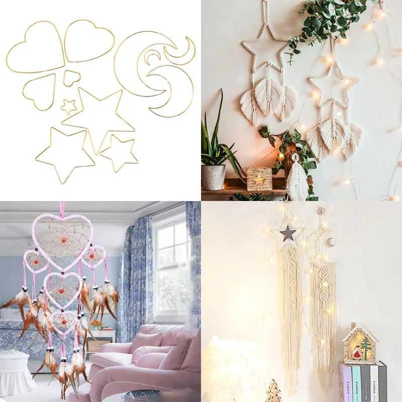 4 шт.компл. Звезды Луна Любовь Сердце металлические поделки кольца Ловец снов кольца для сделай сам Ловец снов венки макраме проект