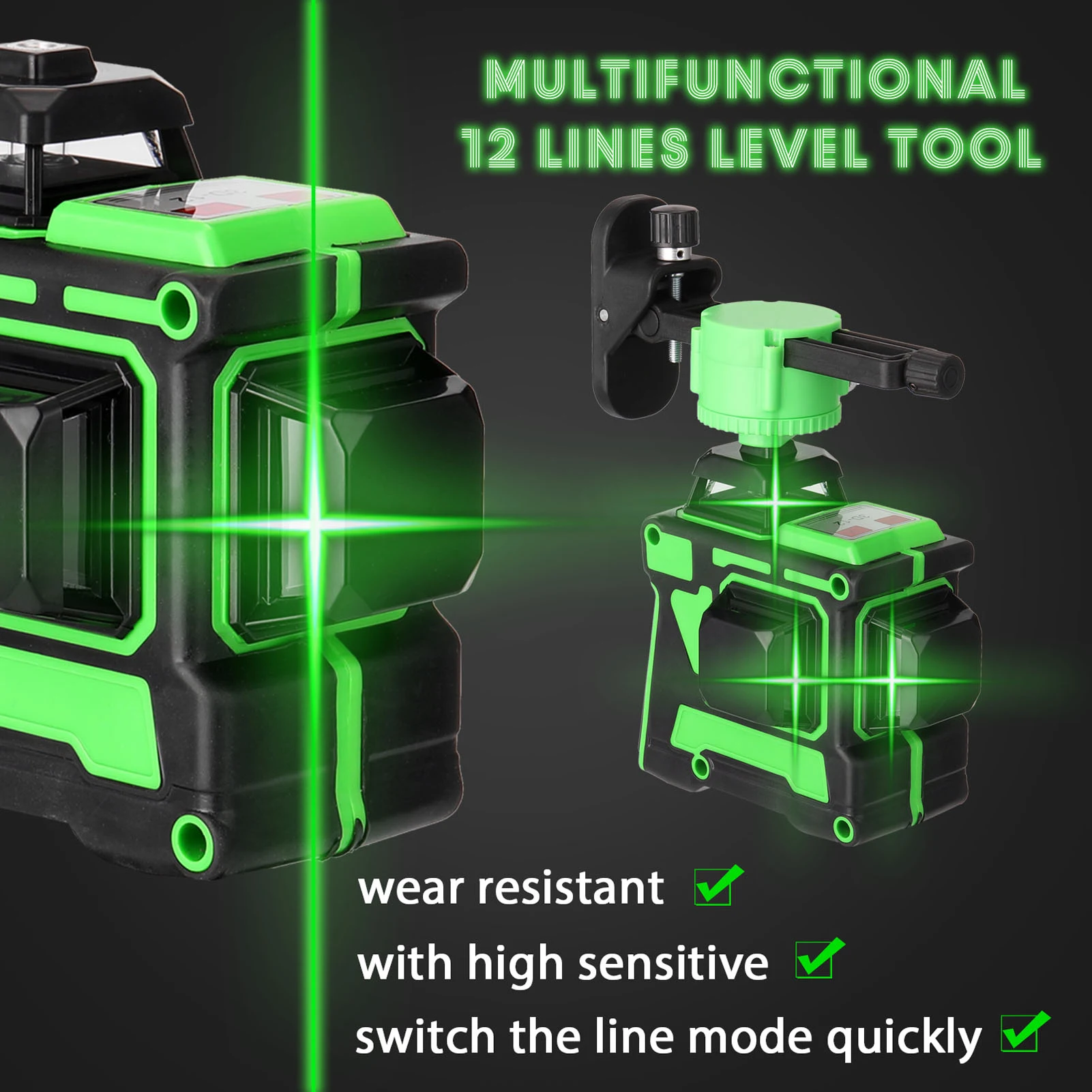 Уровень лазерный самовыравнивающийся, 12 линий, 360 градусов, зеленый