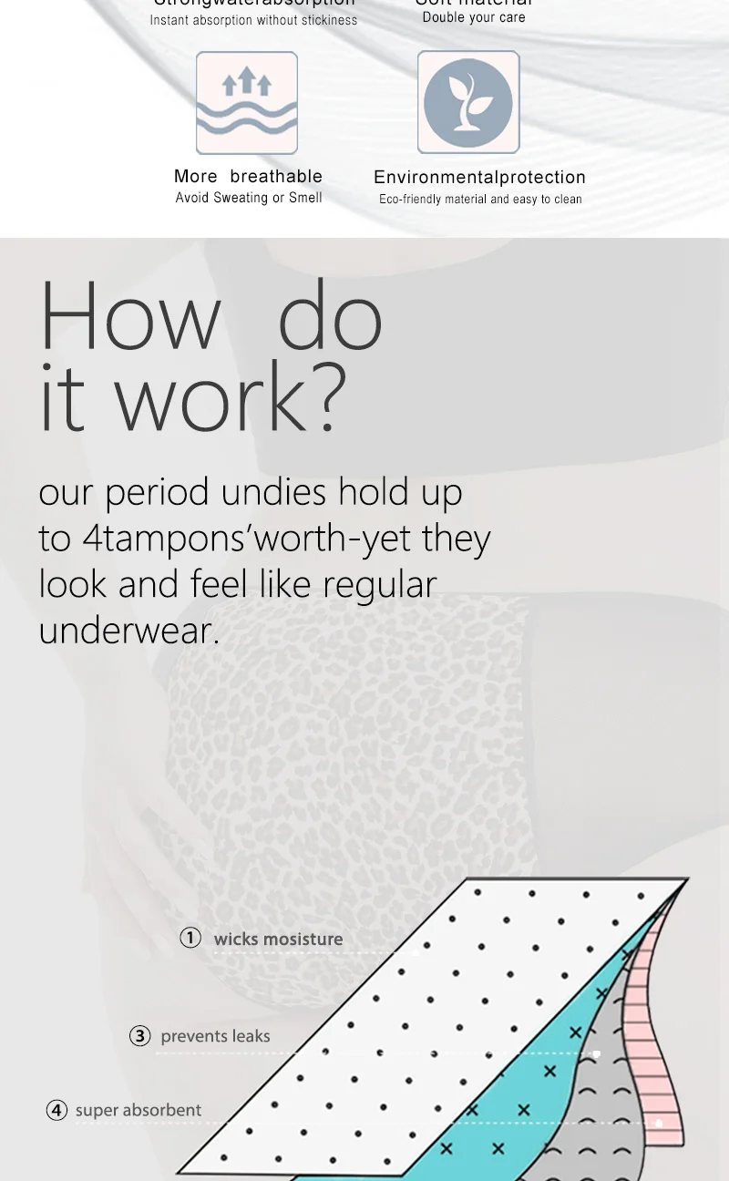 Леопардовое асорбентовое нижнее белье для женщин, трусы для менстру...