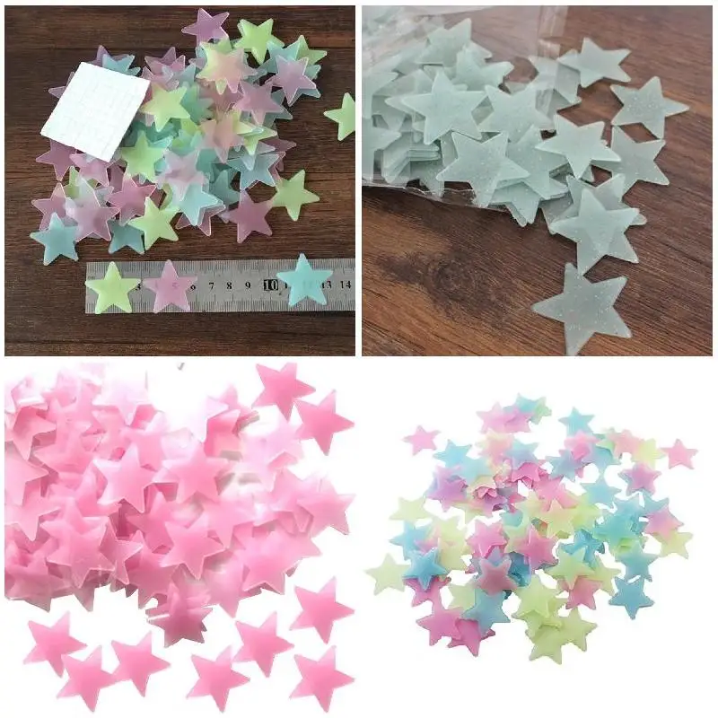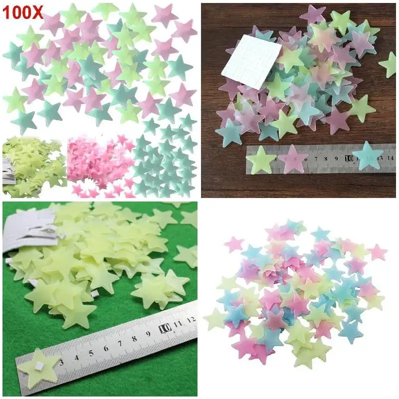 Светящиеся наклейки на стену, 100 шт., наклейки со звездами, наклейки для детской комнаты, красочные флуоресцентные наклейки, домашний декор