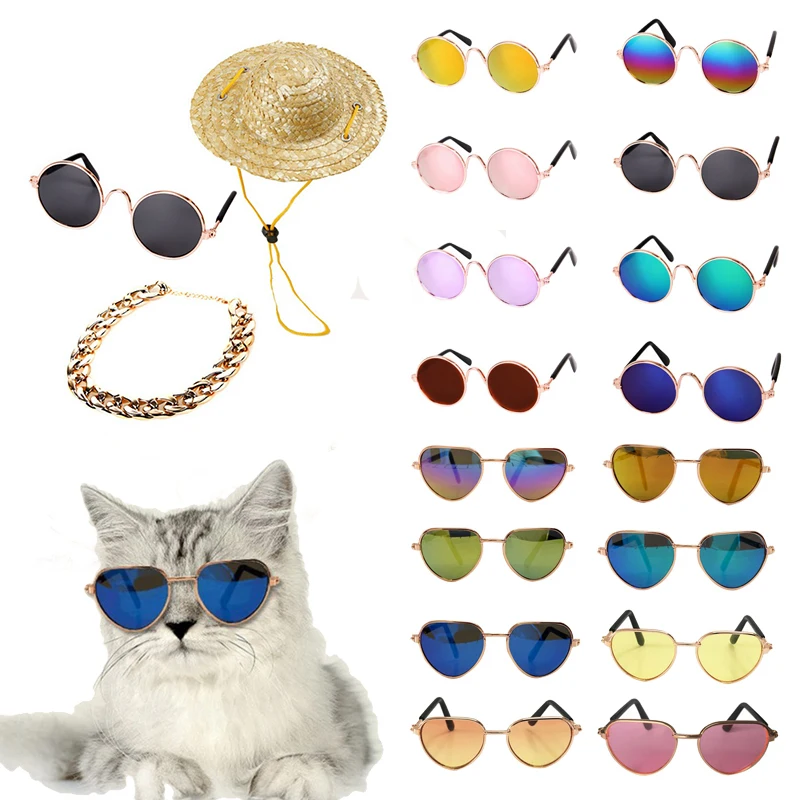 Игрушка для кошек и маленьких собак, солнцезащитные очки, реквизит для фотографий, очки для домашних животных, собачьи очки соломенная шляпа, аксессуары для домашних кошек