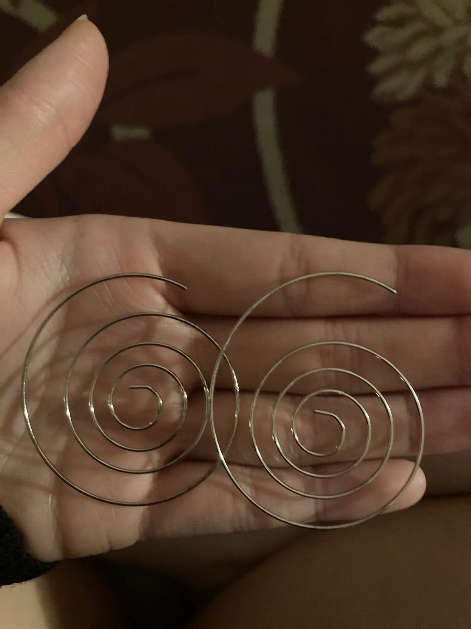 Когда они прибыли один из серьги были согнуты и не было никакого способа получить его форму обратно, но я до сих пор носил их в любом случае, потому что я любил их, И потому что один из них был Согнут первый день я носил Их это чувствовать себя в течение нескольких часов, и я потерял его :( но сразу я купил другой набор, потому что даже Тхо они были согнуты я любил их и как они выглядели на этот раз я'll положить назад на