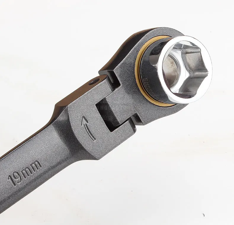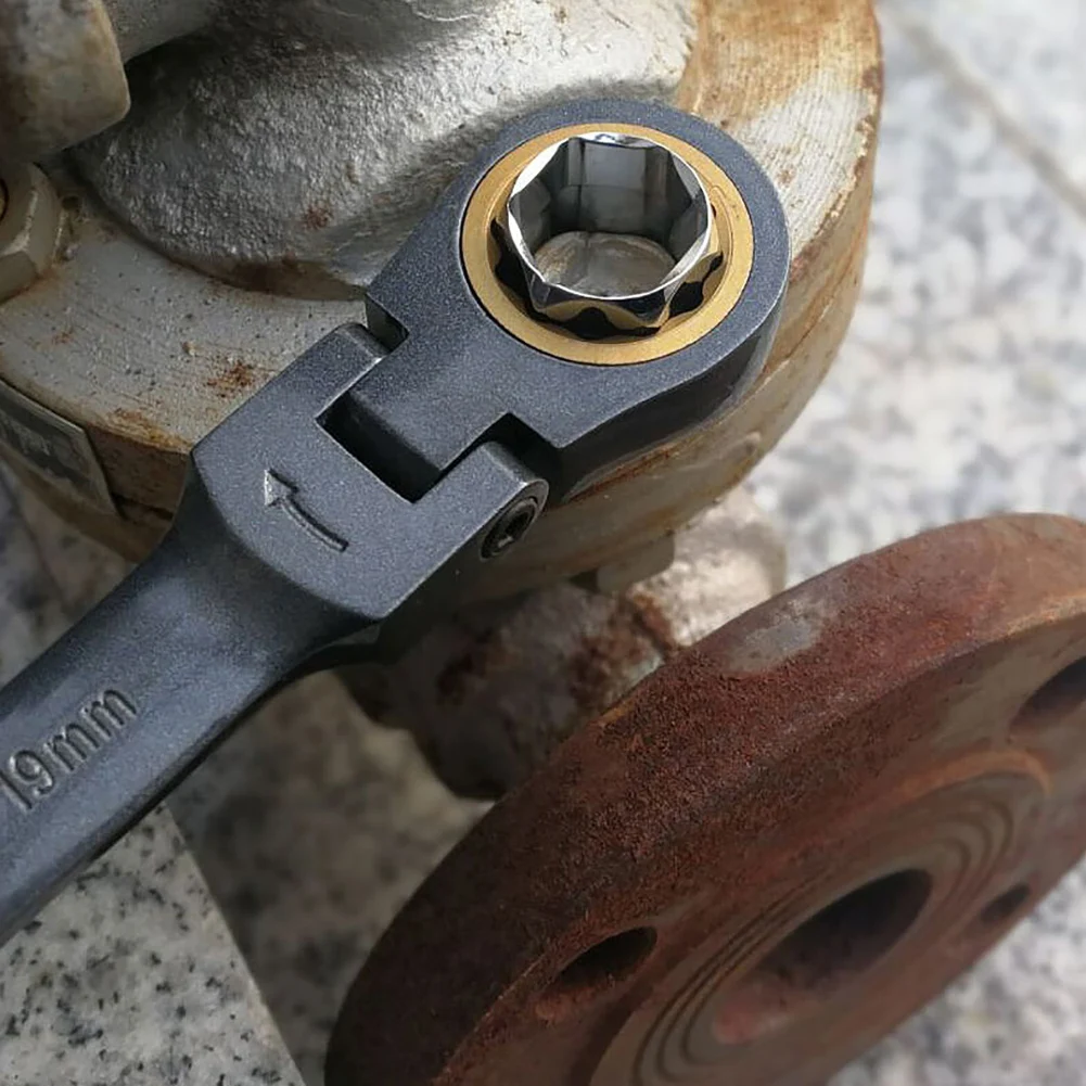 -Поворотная головка на 180 градусов поможет вам легко обойти препятствия и достичь самых плотных частей, которые не могут достичь большинство храповых ключей.
